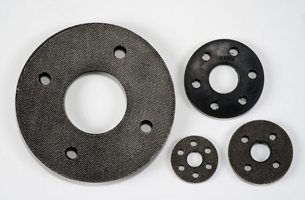 • Gummigewebescheiben (Hardyscheiben) mit verschiedenen Innen- und Außendurchmessern, Dicken, Anzahlen und Größen von Bohrungen. Auf Anfrage auch mit Armierung (Buchse).