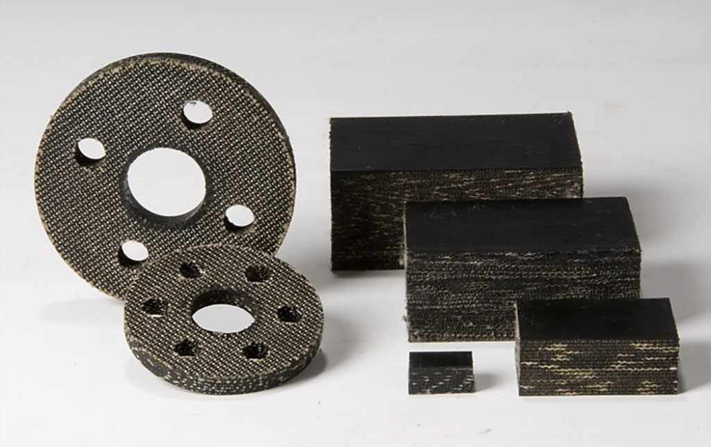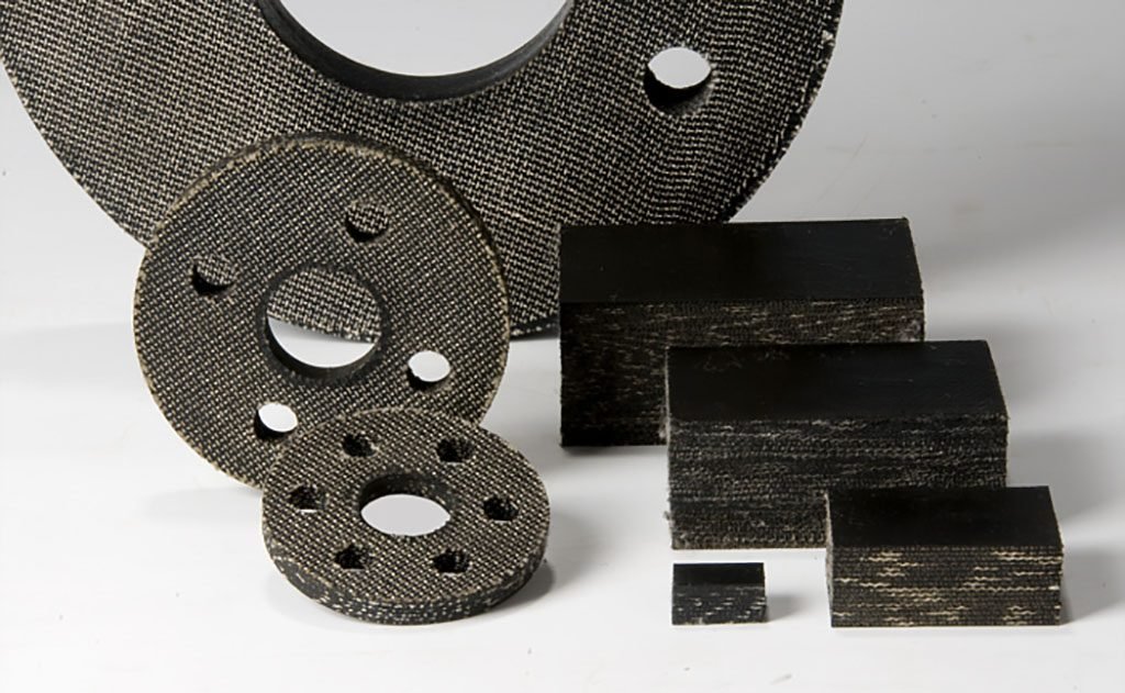 • Gummigewebeplatten, geschnitten als Kupplungsklötze, mit unterschiedlichen Längen, Breiten und Dicken.